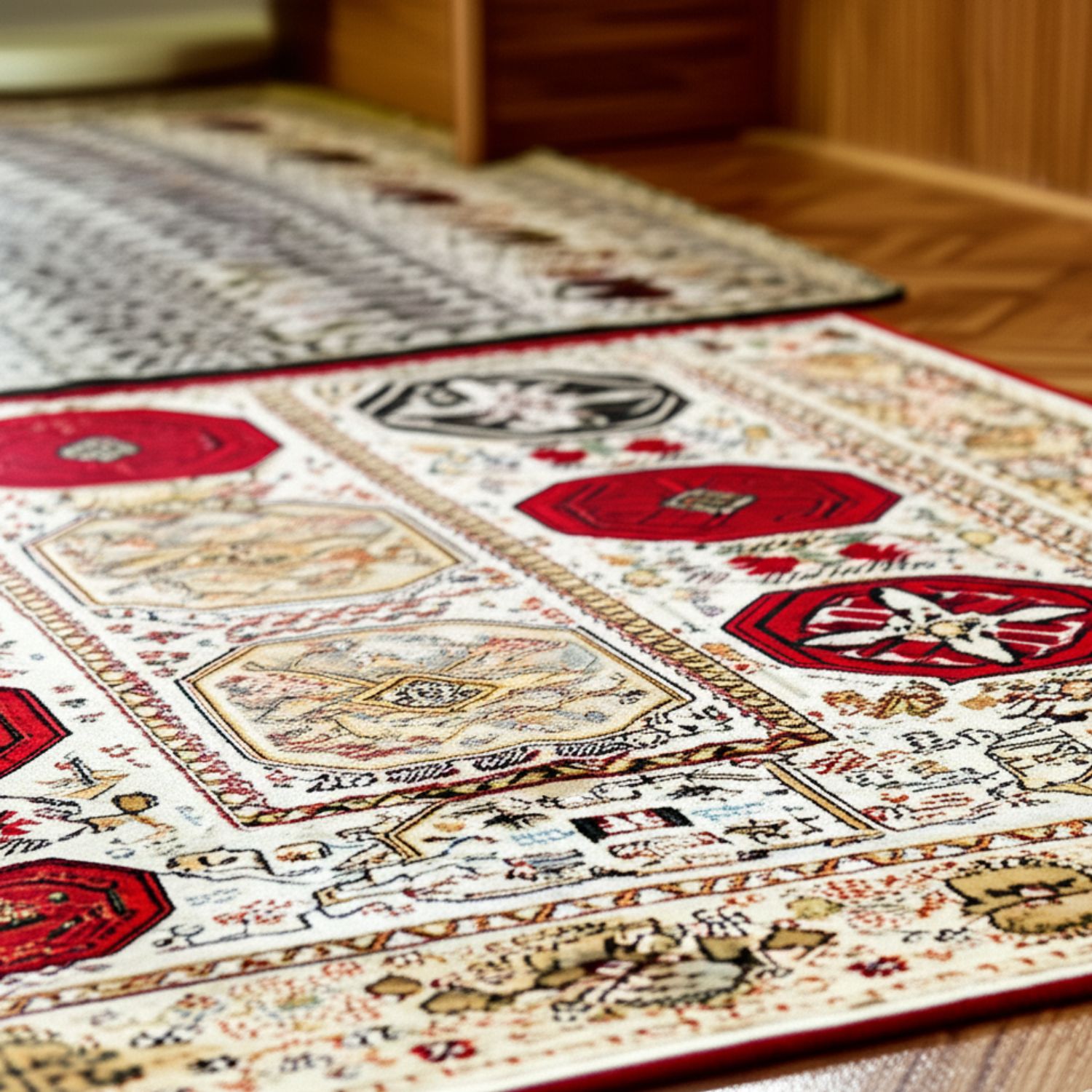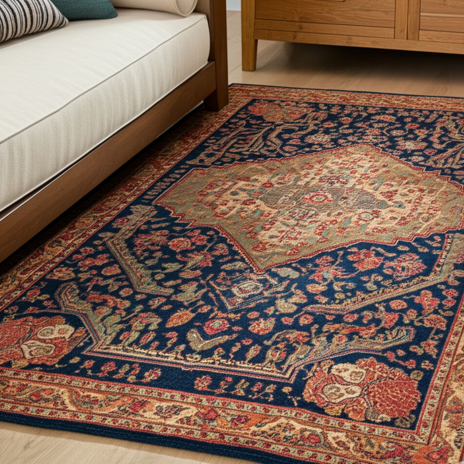 Many vintage-style rugs are machine-woven for durability but are designed to mimic hand-knotted pieces. The result is a high-end look with a softer price point and easier maintenance.
