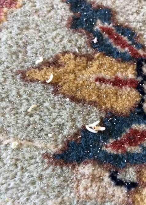 • Live larvae or moth casings in dark corners or rolled-up rugs
